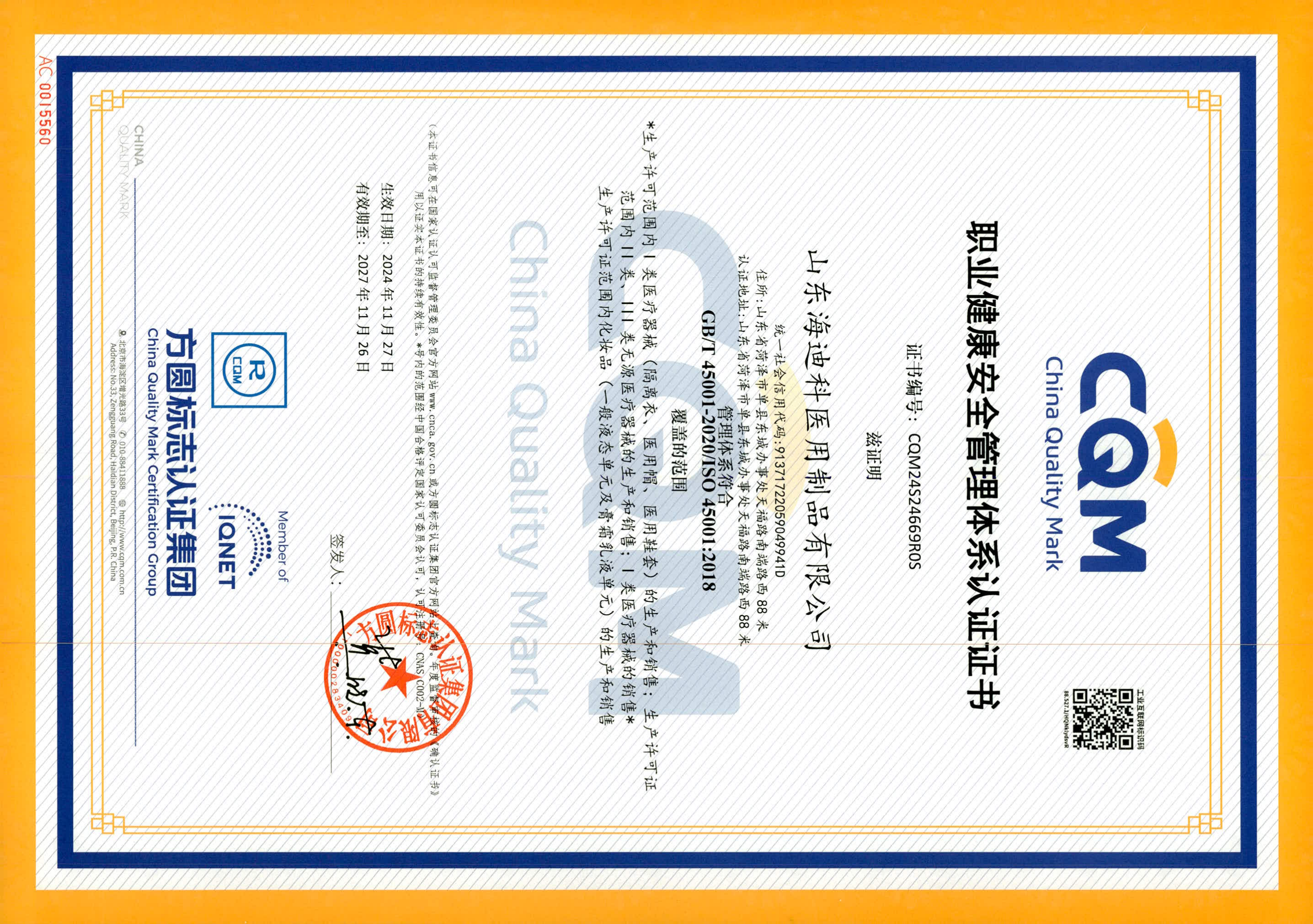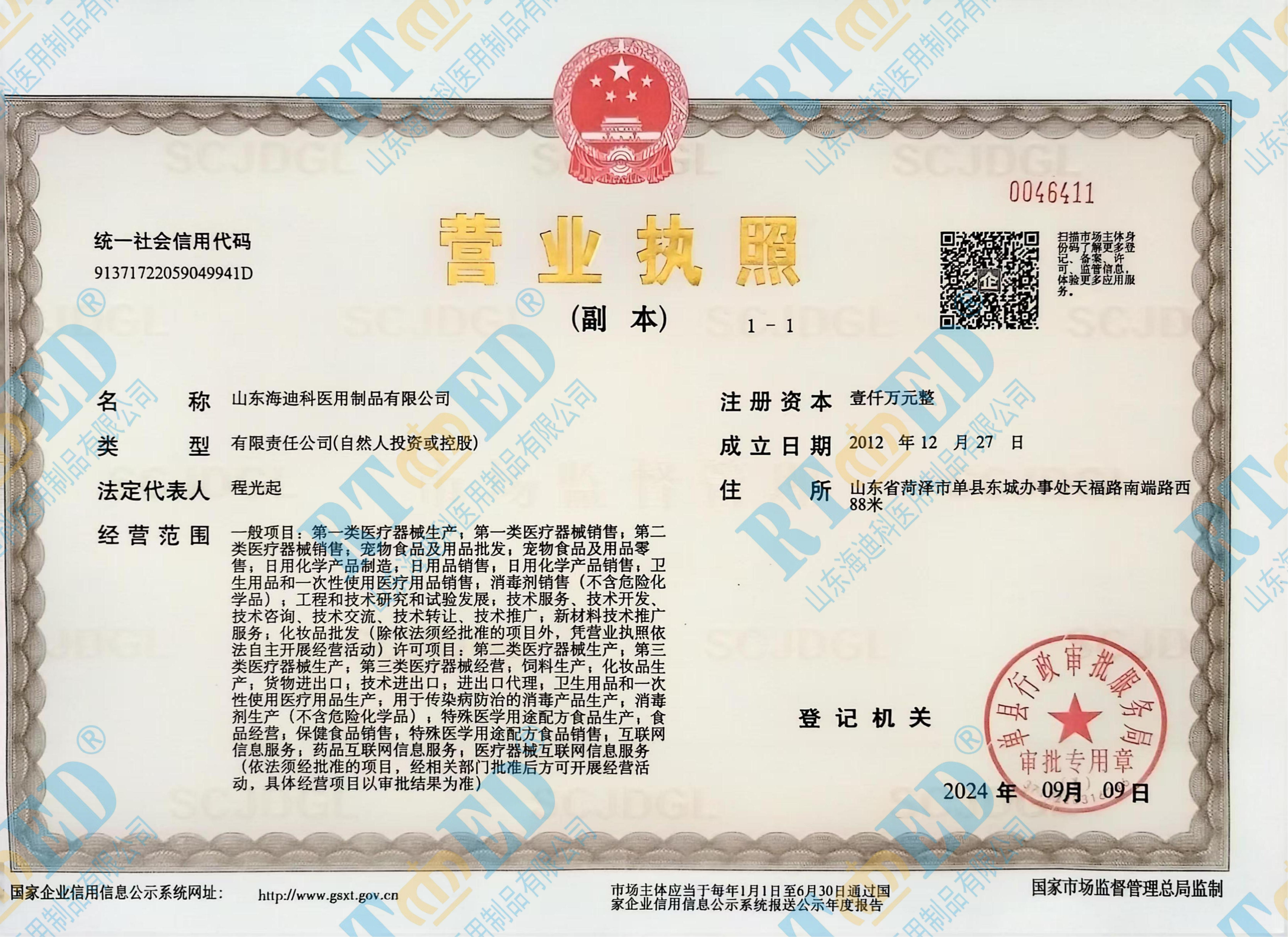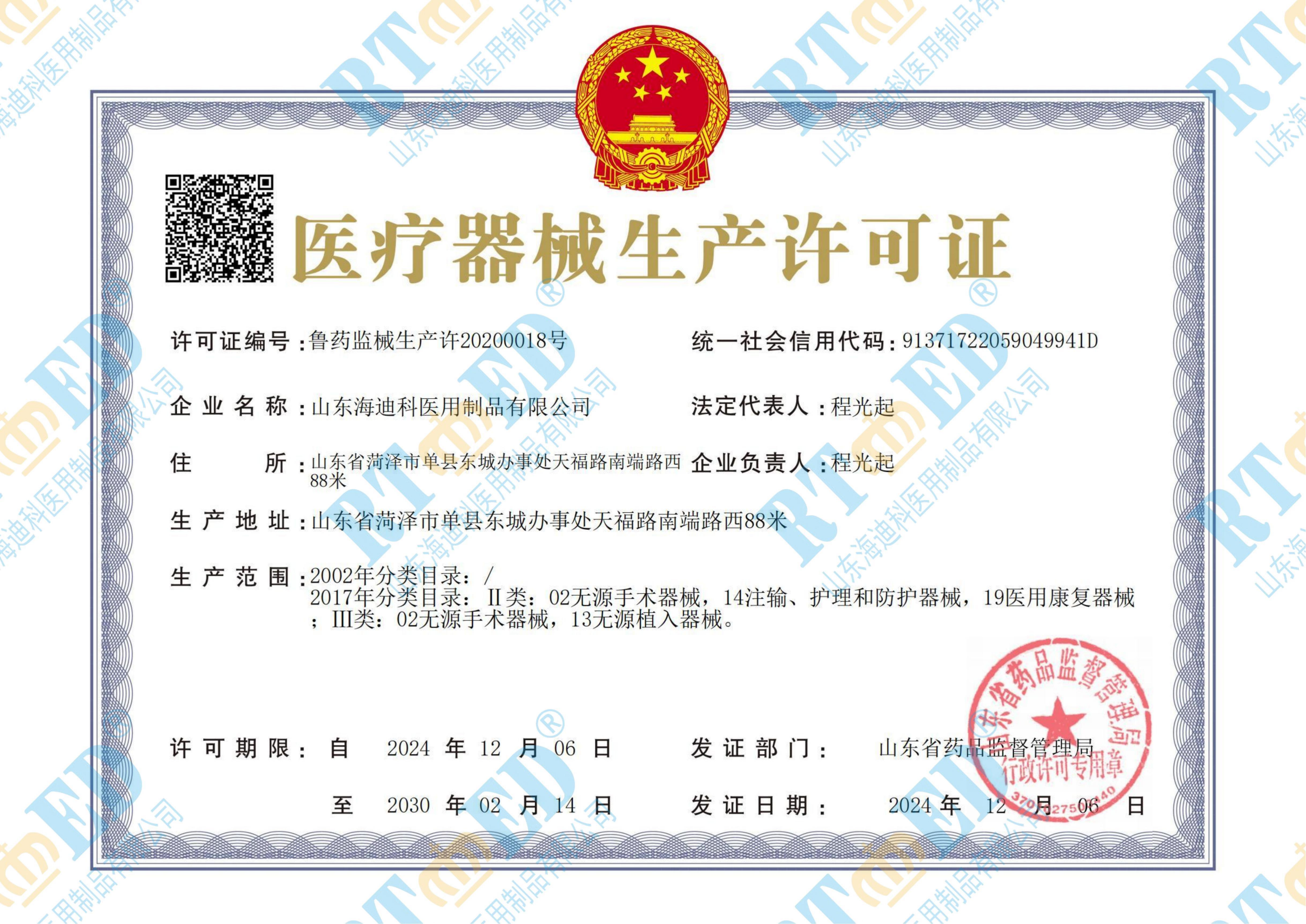 • 海迪科醫(yī)療器械生產(chǎn)許可證
